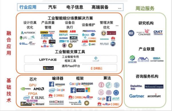 阿里工业大脑全面支持 TensorFlow、Caffe 等架构,已广泛参与到新能源、 化工、重工业等不同制造领域。中国航天科工集团的工业互联网平台基于 Tensorflow 进行轴承预测。