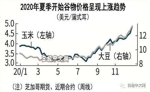 记者:在成为谷物价格指标的芝加哥期货市场上,玉米在2020年12月底涨至6年零7个月以来高点,大豆涨至6年零5个月以来高点,谷物的供求紧张被意识到,行情呈现坚挺走势。