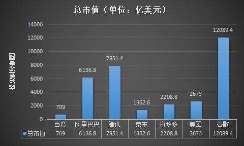 据富途牛牛统计数据显示,截至2021年1月7日,百度的总市值为709亿美元,远不及阿里巴巴、京东、拼多多、腾讯以及同为搜索引擎谷歌等公司。