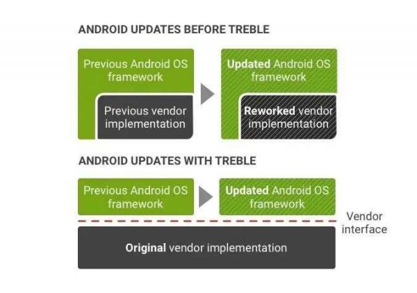 为了进一步减少 OEM 厂商们适配新系统的工作量,继续降低 Android 的碎片化,Google 在 2017 年(Android 8.0)引入了名为「Project Treble」机制。