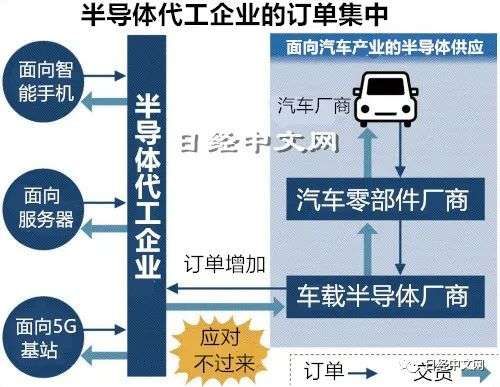 现在在跨行业竞争的状态下,“听说最大代工企业台积电(TSMC)的最尖端产品的订单已排到半年以后”(英国调查企业英富曼咨询总监杉山和弘)。德国大陆认为,车载半导体实现正常供应“可能需要近半年时间”。