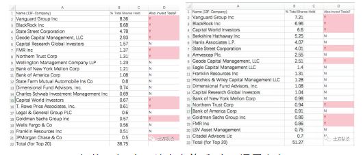 但这个空头,又像一出游戏。有人对比过通用汽车、美孚石油公司的前二十大股东中,有超过40%也是特斯拉的机构投资者。惊不惊喜,意不意外?空头在特斯拉的问题上,更像是左右互搏,怎么都感觉像是同一体系的两派人,在争夺未来的趋势,只不过不巧碰押在了特斯拉身上,结果让马斯克那个郁闷。
