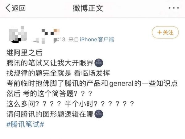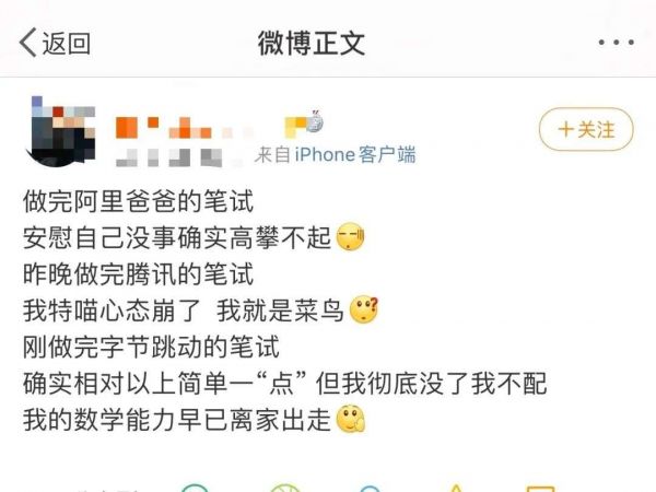 在腾讯、阿里笔试的当天,“腾讯笔试”“阿里笔试”一度冲上微博热搜。不少学生感叹笔试的难度,也有不少和我一样没有准备的同学答完笔试后感到很懵。