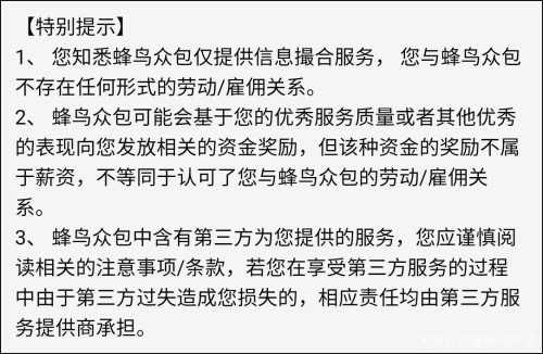 饿了么蜂鸟众包特别提示条款