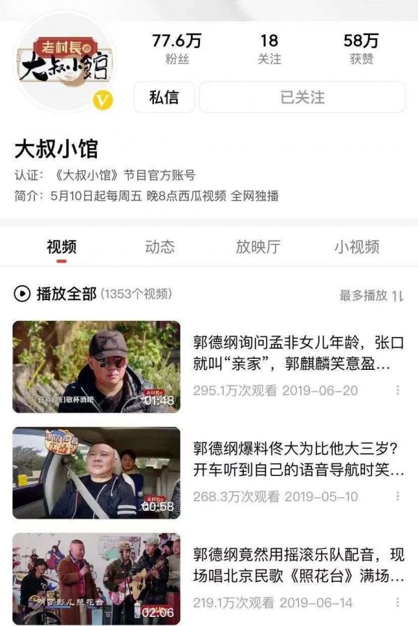 倒是西瓜视频几档自制微综艺,在长视频的强敌环伺中颇具特色。小而美的垂直综艺为西瓜视频打开了微综的局面。这些微综艺涵盖旅行、美食、经济、访谈等题材,《侣行》《大叔小馆》《地标60年》等都取得了较好成绩,引发过不同程度的讨论。
