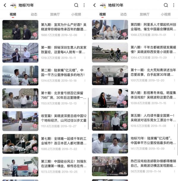 比起版权采买的独播综艺,西瓜视频的自制微综艺显然更贴合站内用户的审美趣味。其中,西瓜视频、今日头条、吴晓波频道联合出品的国内首档经济地理纪录片《地标70年》最受瞩目。该综艺以企业家、吴晓波的视角,带领观众认识了深南大道、陆家嘴、中关村等特殊地标,共同解读时代经济密码。