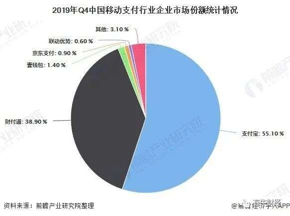但从市场和竞争的角度来讲,王兴理想中“千亿资产的金融帝国”并不是靠几张牌照就能建立起来的,毕竟美团的头上还压着支付宝这么一个庞然大物。据前瞻产业研究院数据显示,截至2019年Q4,支付宝占据了中国移动支付市场55.10%的份额,排行第二的腾讯财付通(含微信支付)也仅占38.90%,其他支付应用所占比例更小,几可忽略不计。