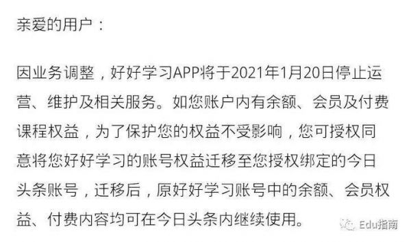 好好学习App:宣布于2021年1月20日停止运营等服务。