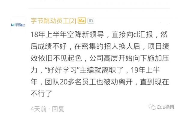 在更早之前的2020年,Edu指南曾对字节跳动教育业务,做过复盘。当时已提到:好好学习,2020年以来,起码在公开场合,业务没有被额外提及,某种意义上,可能进入了“修炼期,或者是瓶颈期”。