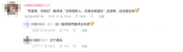 比如,AI就把这句著名的“苟富贵,勿相忘”就翻译成了“没有钱的人,总是会被遗忘”。