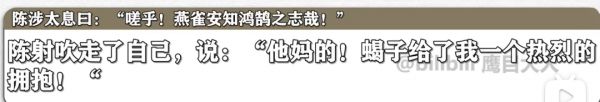 相信不少人还记得中学的时候全文背诵《陈涉世家》的痛苦,当然还有考试的时候让你翻译某一句名言,像是“燕雀安知鸿鹄之志哉”,或者“天下苦秦久矣。吾闻二世少子也,不当立,当立者乃公子扶苏”。