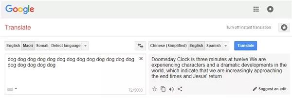 此前就有Reddit网友指出,谷歌翻译在学习过程中可能受到了输入来源的影响,将一些意味不明的语句翻译成了如圣·经一般的语言。比如这个: