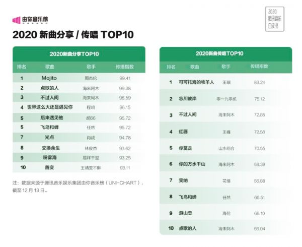 但2020年,网剧的“翻身”给我们一点启示,网剧发展了十来年才终于走到《隐秘的角落》这一步,真正属于互联网的音乐时代才刚刚开始。我们丝毫不用怀疑,基于互联网发展起来的新音乐生态也会出现新的国民级歌手和金曲。