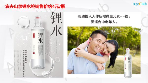 在天然矿泉水品类细分的大趋势下,农夫山泉将目标瞄准了中老年消费人群,锂水同时填补了含锂水品类和中老年细分市场的空白。