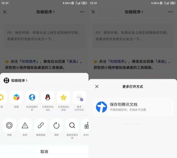 打开一篇公众号文章,点击右上角的「…」后拖动工具栏,你就能看到「更多打开方式」的按钮,点击即可将文章保存至腾讯文档内,该打开方式不限制存储空间,且打开内容永不过期。