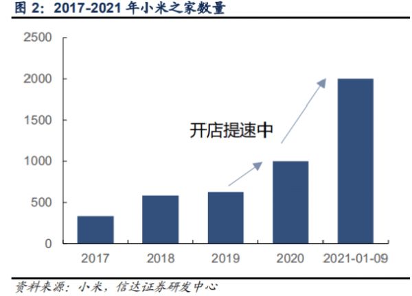 自2015年第一家小米之家开业,到2020年12月,小米线下共有2379家门店,而从2019年的"百店同开",到2021年的"千店同开",也能看出,小米之家拓展的脚步加速了。这背后的原因之一,自然离不开小米手机。