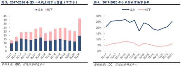 小米公告显示,2020年Q3小米在国内线上市场以 25.7%的市占率引领行业,然而同期国内线下市场小米手机市占率仅为 6%。由此可见,线下市场份额的增长空间还存在较大的增长空间,而下沉市场作为线下市场的重要组成部分,自然也扮演了重要角色。