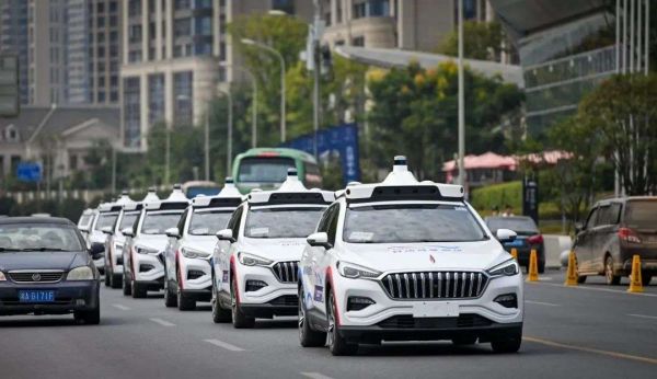 在开放道路上行驶的Apollo Robotaxi车队