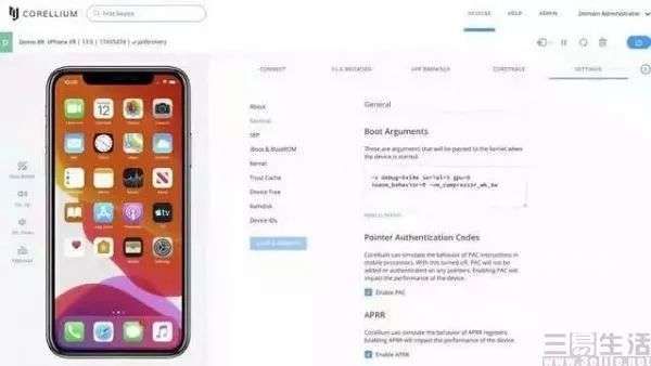 如果说让iPhone能够运行Android只是一个有趣的创新,那么Corellium的老本行iOS虚拟化显然就可能动摇苹果的根基。Corellium以自家Hypervisor技术制作了一款名为x01Corellium的应用,其基本上可以视为一个iOS的精确复制版本,通过这一应用,研究人员可以设置iOS内核启动的选项,设置自定义的内核或内核补丁,甚至于可以设置苹果最核心的Device ID或者Chip ID,创造出一台不存在的iOS设备,或是伪造某个已经存在的设备。