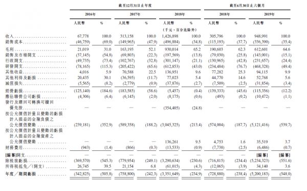 但是,旷视的表现却好于Element AI。进入到物联网领域后,旷视的商业化进展开始加快,招股书显示,公司2016年收入6780万元,2017年收入3.13亿元,2018年收入14.26亿元,2019年前半年收入9.48亿。2016年到2018年的复合年增长率达到了358.8%。