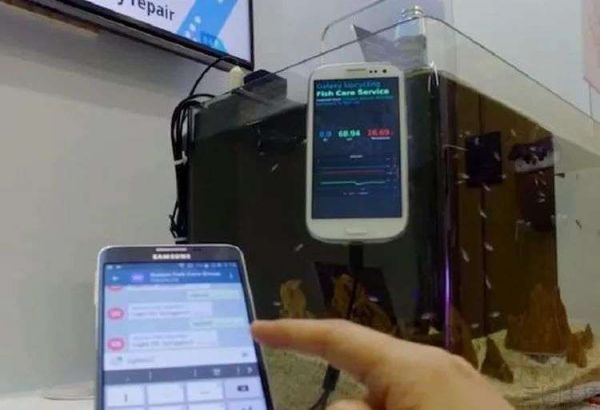 除此之外,三星甚至还尝试了一些相对复杂点的使用案例,比如用老手机连接上传感器,用于分析鱼缸里的氧含量,自动投喂鱼食,自动开启鱼缸照明系统;或是将老手机组装进3D打印的机壳里,变成自动宠物喂食机,甚至还能在宠物进食的时候通过老手机的摄像头“偷拍”它们。而且因为是手机摄像头,其画质显然会比大多数家庭安防设备的还要更好一些。