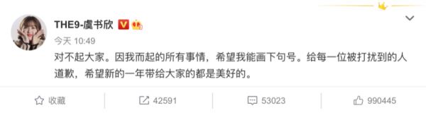 昨日微博热搜前五,三个在道歉——郑爽向金晨道歉、丁真道歉信、虞书欣道歉。以道歉结束2020,又以道歉开启2021。
