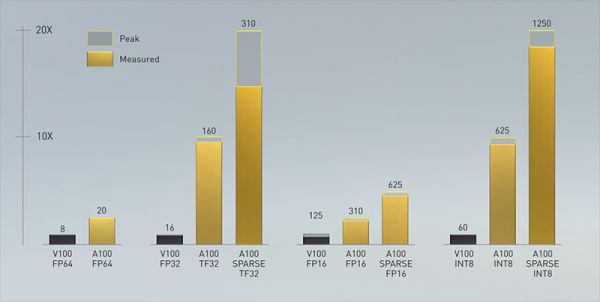NVIDIA A100 GPU较上一代V100性能提升20倍