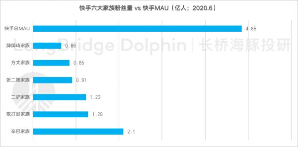 以粉丝总量最大的辛巴家族为例,其粉丝量接近快手 MAU 的一半。而从直播带货的 GMV 情况来看,辛巴家族的整体带货水平与其粉丝量影响力同样较大。