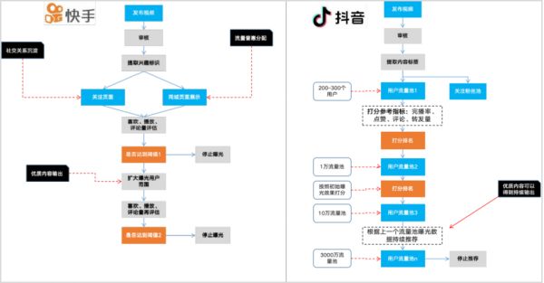 抖音对于优质内容会进行持续推荐至不同量级的用户流量池,不断倾斜流量资源。但快手对单一内容的曝光设定了阈值限制,以实现流量普惠。因此我们可以看到,在快手上流量的分布未在优质内容上得到显著体现,而是体现在创作者的粉丝规模上(私域流量)。