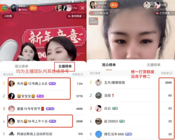 如果大量的打赏是这种家族内部撑门面或家族内养不同梯队的账号, 或者是上图这种 “诡异” 的巨额打赏带来,怎么说服投资者直播打赏具有可持续性?