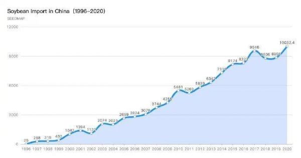 近年来,进口转基因大豆的量持续增加。2020年,虽然国际贸易纷争不断,但中国进口大豆还是超过了1亿吨。