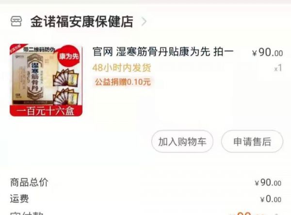 其中,排在搜索榜第一位的就是“郑州康为先湿寒筋骨丹”,点入链接后,销售的店铺名为“健民保健”。