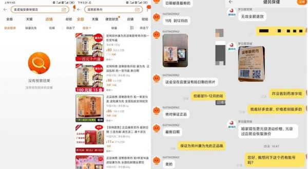 在对几个淘宝店铺的客服进行咨询时,店铺客服人员也强调,售卖产品均为正品保证,药品生产日期也均为11月-12月左右。当燃财经就“为何没有看到国药准字以及药品批号是什么”向“健民保健”的店铺客服沟通时,本来积极回复的客服人员截至发稿也并未对此问题进行回复。