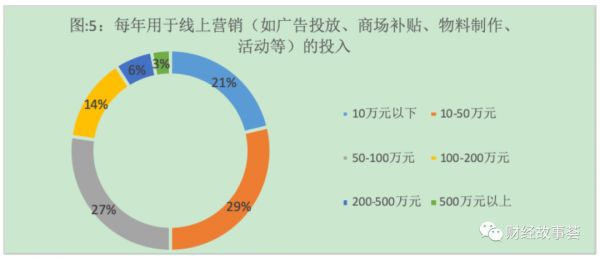 此外,大多数企业还处于观望状态,近八成的企业,2020年线上营销费用的总投入100万以下,甚至还有两成企业全年投入不到10 万。
