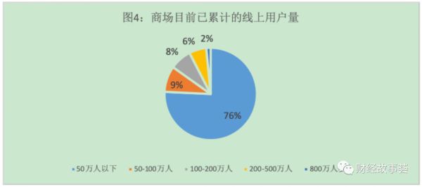 而行业数据则显示,接近80%的购物中心的数字化运营,还仅仅处于试点尝试阶段,并没有全面铺开,76%的百购企业,线上累计的用户量都在 50 万人以下。
