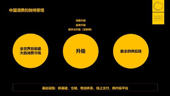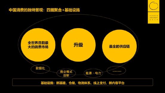 最后,我们把这三件事情画成三个圈:最大消费市场、最全供应链、最极致的效率升级,放在这张图上,取名为“全世界没有人攒齐过的三个圈,除了中国”。