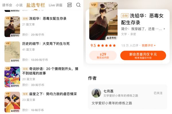 到了19年,推出会员服务体系“盐选会员”,才算是入了会员内容消费新赛道的正轨。在盐选会员的加码下,有越来越多答主的创作内容正在被转化为优质的“盐选付费节目”。