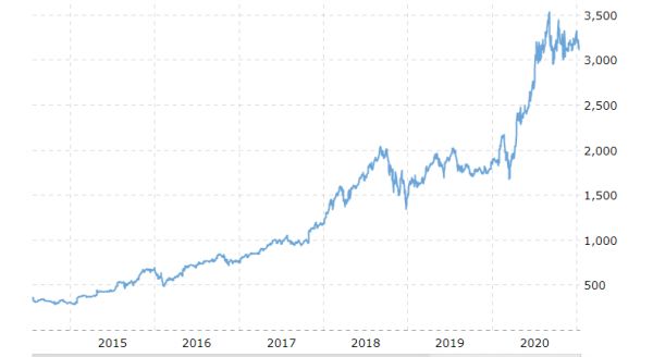 过去5年亚马逊股价变化 pic/Macro Trends