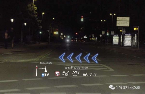 而在用户输出方面,目前最有希望的技术路径是使用HUD技术将仪表盘和其他信息投影到前挡风玻璃上,用一种类似AR的方式来实现浸入式的驾驶体验,从而用户的视线无需离开路面就能够同时接收到智能汽车提供的信息。