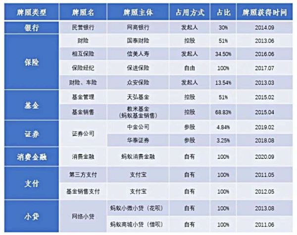 目前蚂蚁集团的金融版图中,已经拥有银行、保险、基金、证券等传统金融牌照,也取得了消费金融、第三方支付和网络小贷牌照等对于互联网金融公司最具价值的金融牌照。