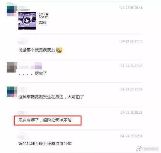 而就财经网最早发布的一条微博中,据该车主的朋友称,“保险公司说不赔。”