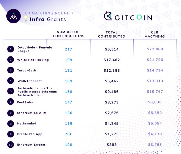由最近的Gitcoin二次融资轮提供资金的以太坊生态体系重要公共产品的例子。包括区块链在内的开源软件生态体系都要极大地依赖于公共产品。