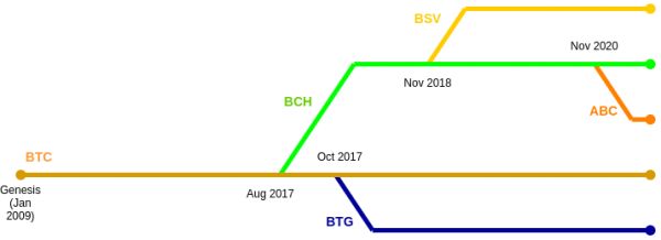 截至2020年,主要的比特币分叉区块。不包括Bitcoin Diamond,Bitcoin Rhodium,Bitcoin Private,或其他任何我强烈建议你完全无视,除非出售的一长串比特币分叉清单(也许上面列出的的分叉清单里面的某些你也应该卖出去,比方说BSV就绝对是个骗局!)