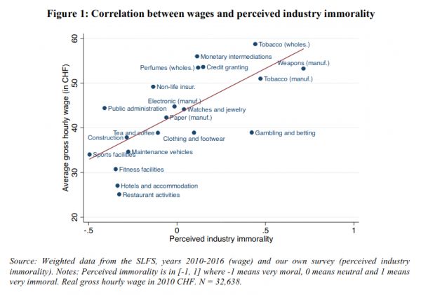 这些差异非常的有意义,而且是可衡量的。举一个例子,不妨看看瑞士这份关于对从事不道德工作的补偿差异的研究报告——如果雇主认为某项工作在道德上会令人不愉快的话,得多支付多少额外费用才能说服某人工作?