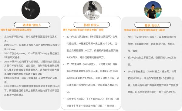截至目前,团队已经出产多部⾼质量游戏和技术研究项⽬,包括《赛博争霸》《VR战⼠》《星际⽅⾈》《⾦字塔》《⾼峰期》等,并多次获得Chinajoy,⾦陀螺等⾏业平台的专业奖项。