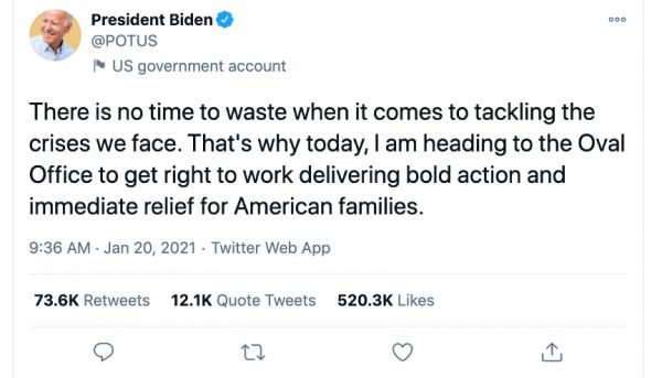 与上一届总统账号过渡政策不同,当时奥巴马的正式帐户被转移到特朗普总统手中时,1300万粉丝也自动迁移,而此次拜登不会保留特朗普帐户的现有追随者,这些关注者将收到有关转移的通知,并可以自由选择关注拜登的POTUS帐户,并表示自己将“从零开始”。