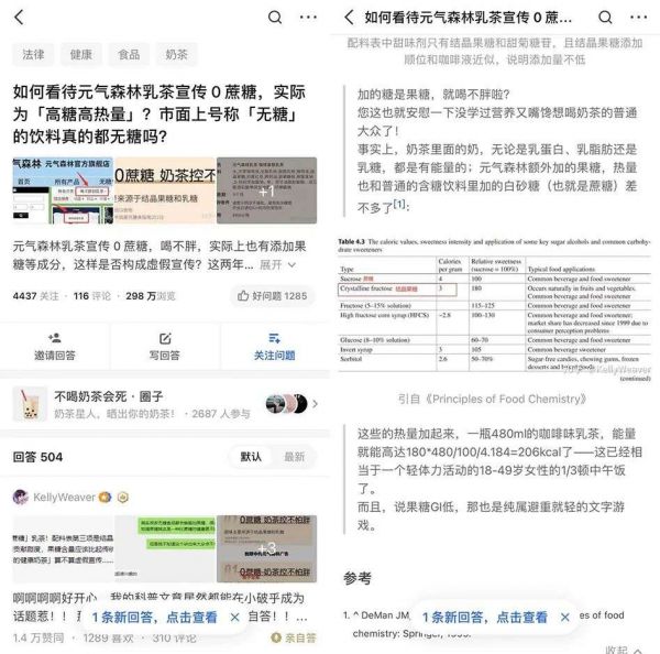 ■ 元气森林乳茶产品添加糖的争议 来源:知乎
