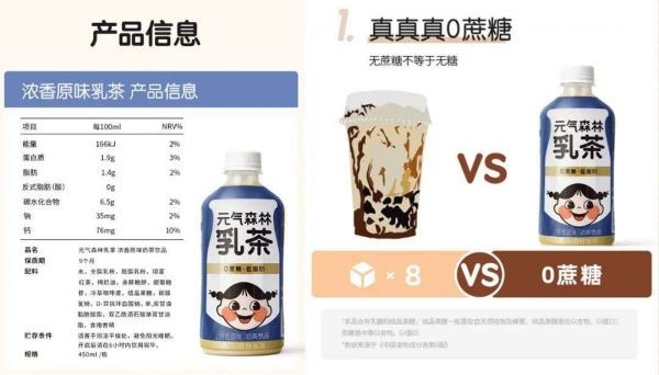 ■ 元气森林乳茶的产品信息(左)线上宣传(右)