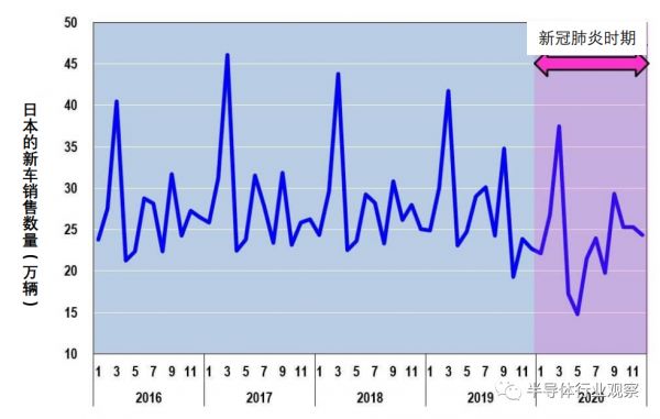图3:日本的新车销售数量(统计)数量(2016年-2020年)