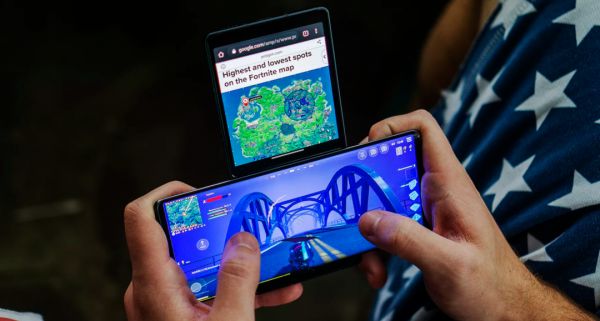 LG Wing让用户可以利用两个屏幕同时运行不同的应用,比如在横置的屏幕上玩游戏的同时,还可以通过纵向的小屏幕观看消息。